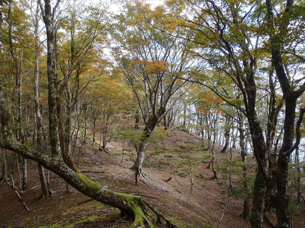 絵になる場面もなく、迷岳に着いた。ことしの紅葉は遅い? 9月は暑かったもんね。(@_@;)