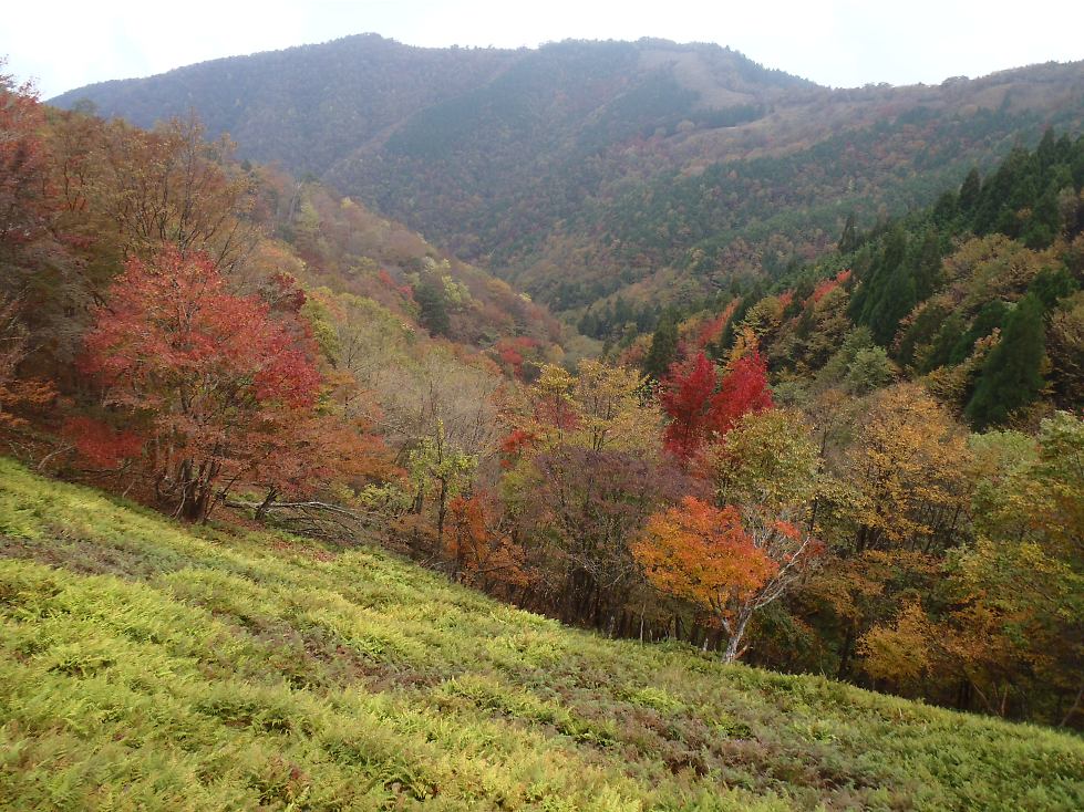 稜線近くは黄葉していないのに、下の方が黄葉が進んでいました。