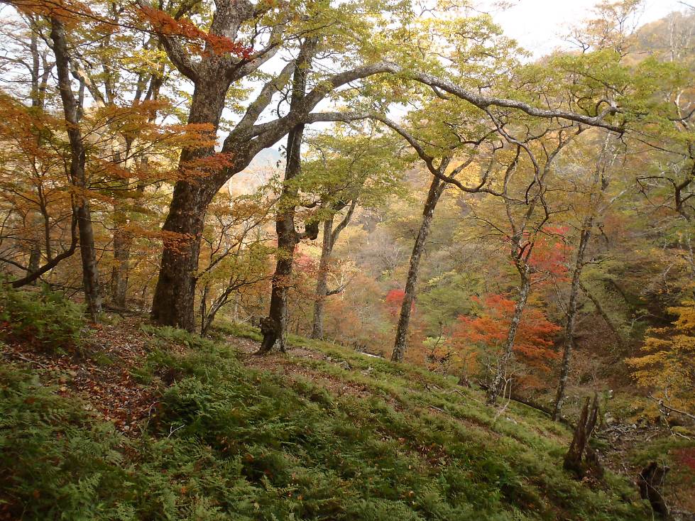 赤ゾレ山北東尾根のブナの平は黄葉が始まっている。