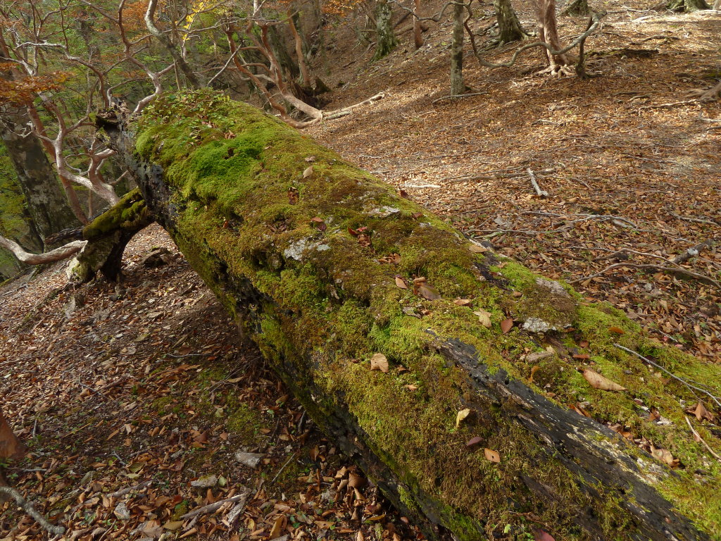 毎年山の恵を頂く倒木に着いたが、1つも生えていないよ。