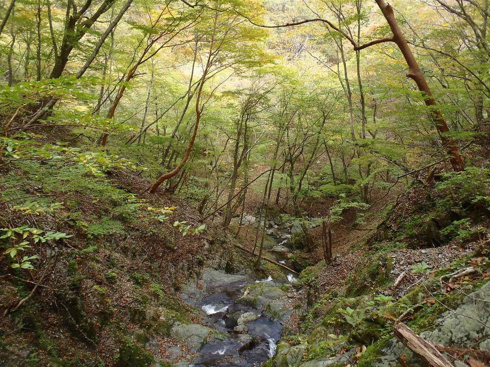 谷の中は青々としていたので、黄葉前線のど真ん中を目指しました。