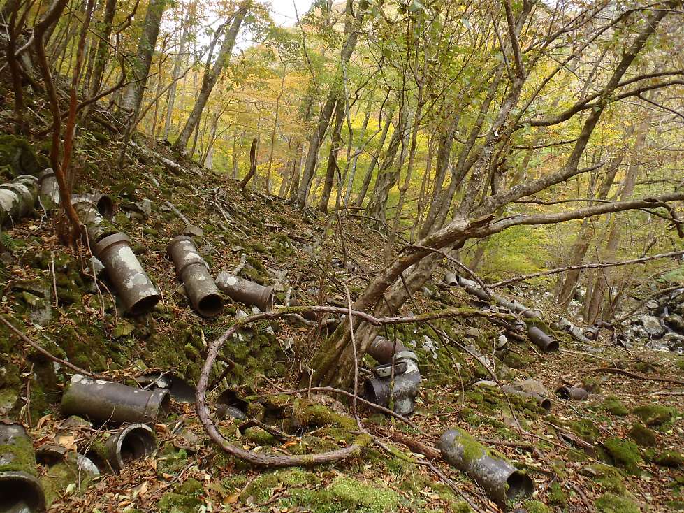 赤グラ滝谷で一等好きな場所は、左岸の乾溜工場先の右岸の台地。乾溜工場の宿舎が立ってたらしき場所の二次林です。ビール瓶がいっぱい並んでいるトコですね。