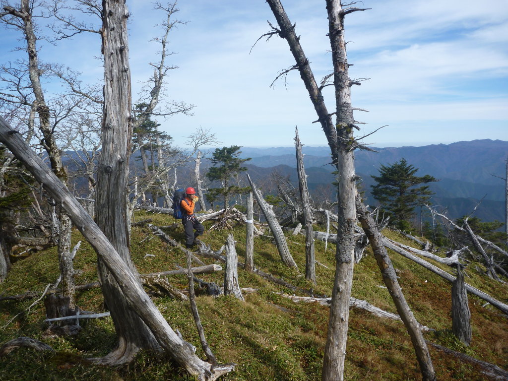 >落ち口ラインを過ぎて見えたのは緩やかな疎林の台地だった。予想もしなかった光景に頬が緩む。