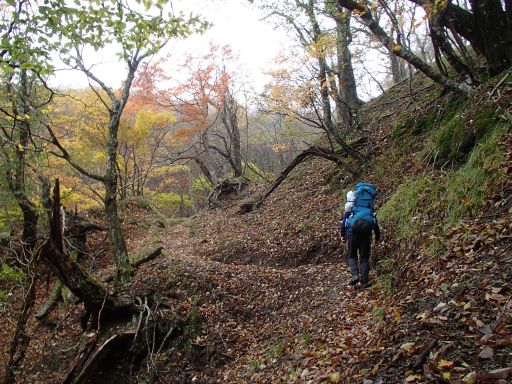 その後、小ピークのアップダウンを数回繰り返し、途中道が崩れた場所もあり通過に時間がかかります。