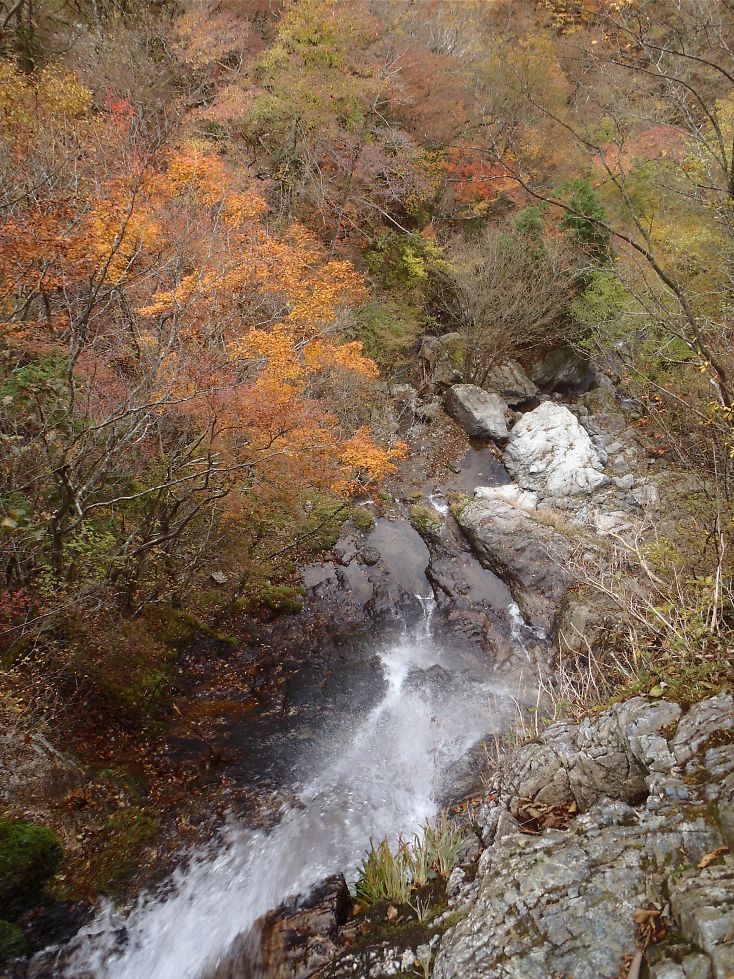 本当は紅葉に映える滝を見ながら谷筋を行きたかったが、情報不足だったので比較的安全な尾根ルートにしました。谷道さへわかれば、当然ながらこちらの方が、安全で楽です。