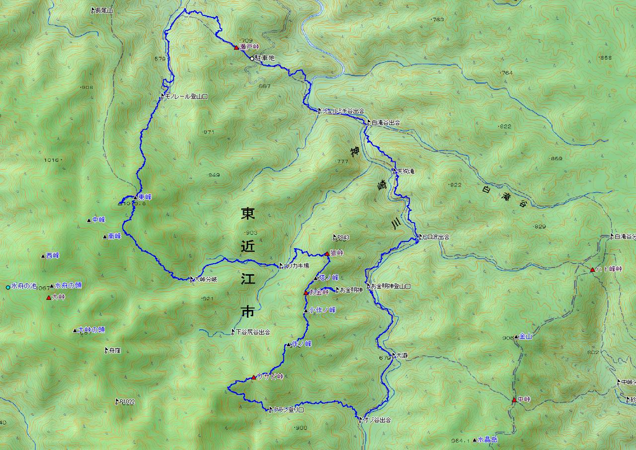 コースを周回しています。違ったところは、スタート(ゴール)地点、コリカキ場への下りがお金峠ではなく狐峠だったこと、北谷尻谷か