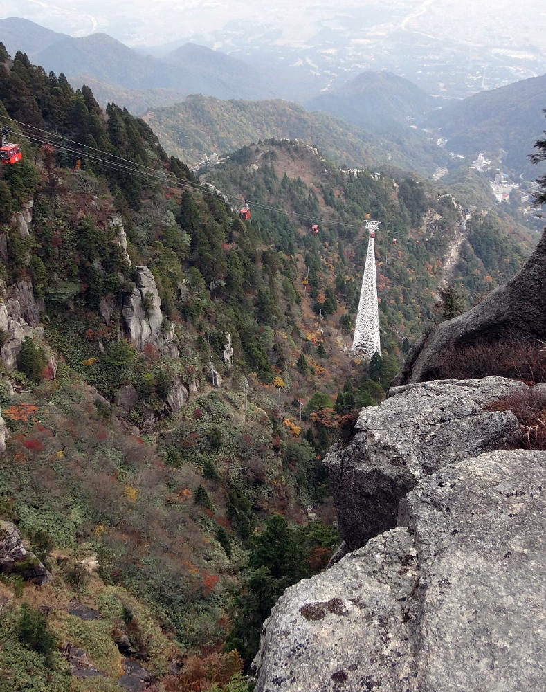 大黒岩で朝、本谷コースへ向かった単独男性に再会、言葉を交わす。やぶこぎネットをPRしておいた。大黒岩からロープウェー駅への尾根の道は通せん棒をしている。 山上は観光客がいっぱい。アゼリア食堂の横には鉄骨の展望台を建設中だった。