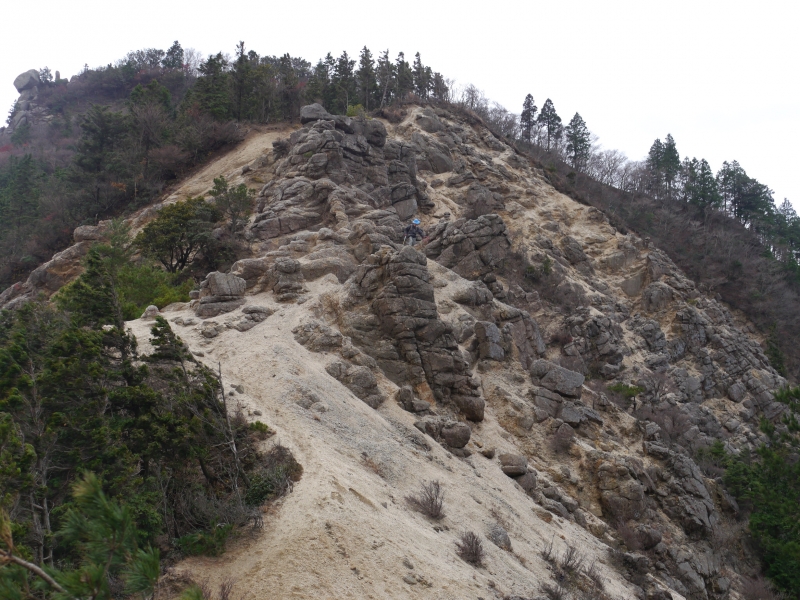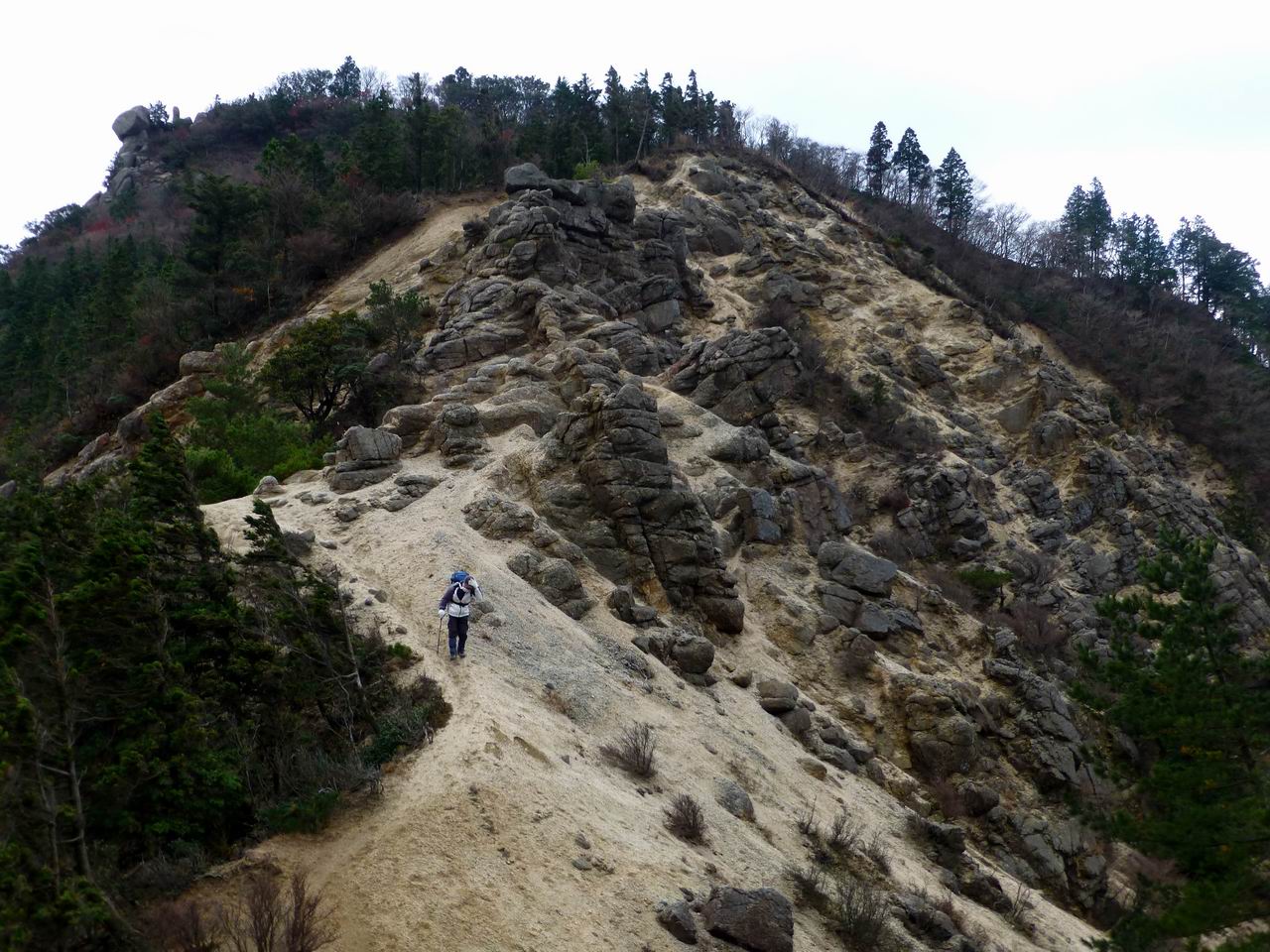 仙鶏尾根は、小さなアップダウンを繰り返しながら、次第に高度を上げていき、仙ノ石を経て、最後は仙ヶ岳(961m)に達します。概ね花崗