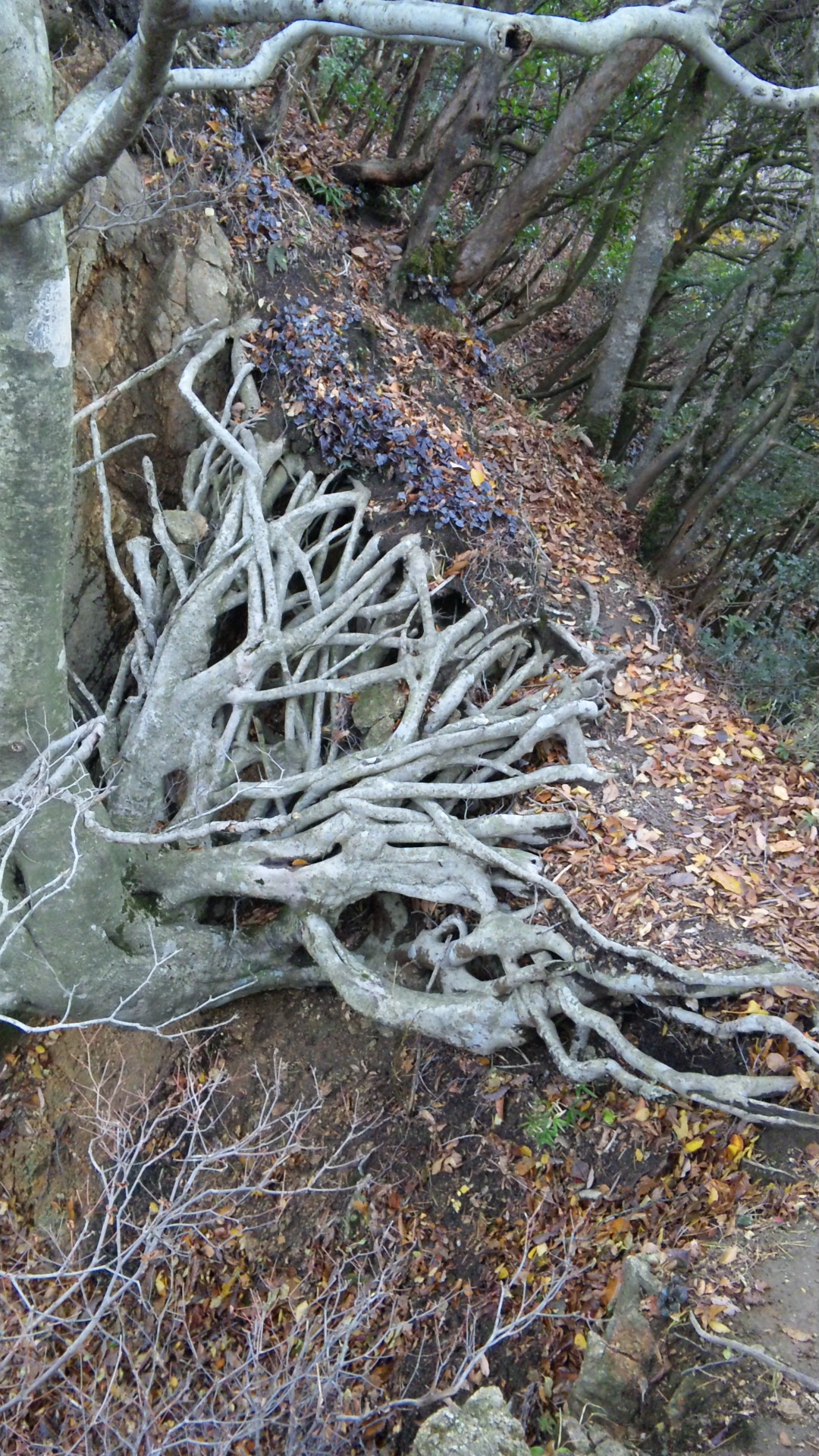 徐々に高度を上げて行くと所々落ち葉で滑り易い道になりますが夏はいかにもヒルがいそうな道です。