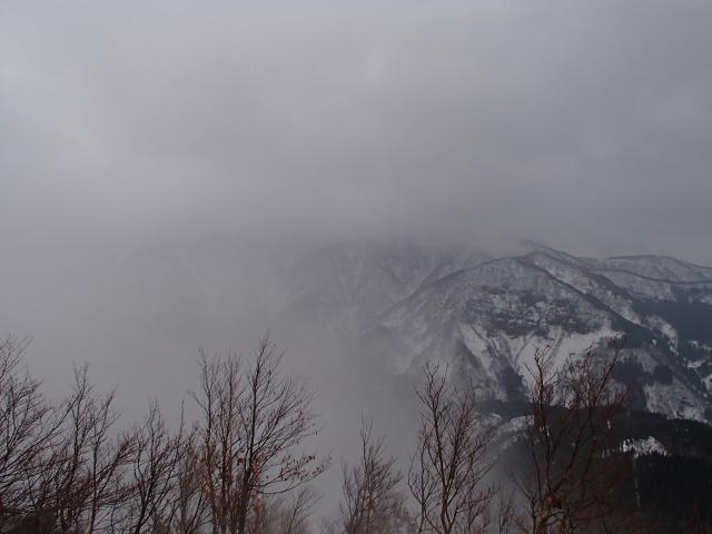 まだ誰も登っては来ない山頂で、早めの昼食でゆっくり時間を潰すが、まるで晴れてくる気配はなし!