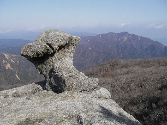 もちろんキノコ岩にもあいさつして釈迦ヶ岳の展望など楽しむ。