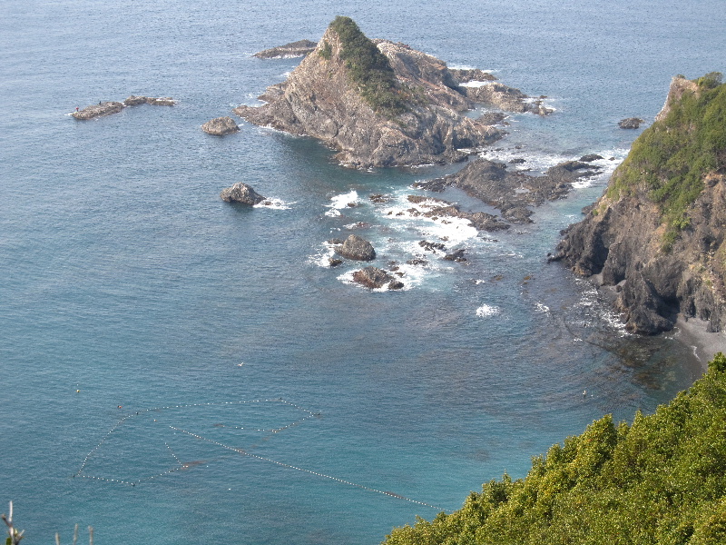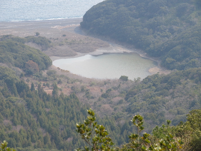 ウバメカシを切り開いた歩き易い道、最近の手入れもはいっているようだ。zippさんが書いていたけど畑跡が尾根上のいたるところに残っていて驚く。浜に下る道も有るが降りずに進む。