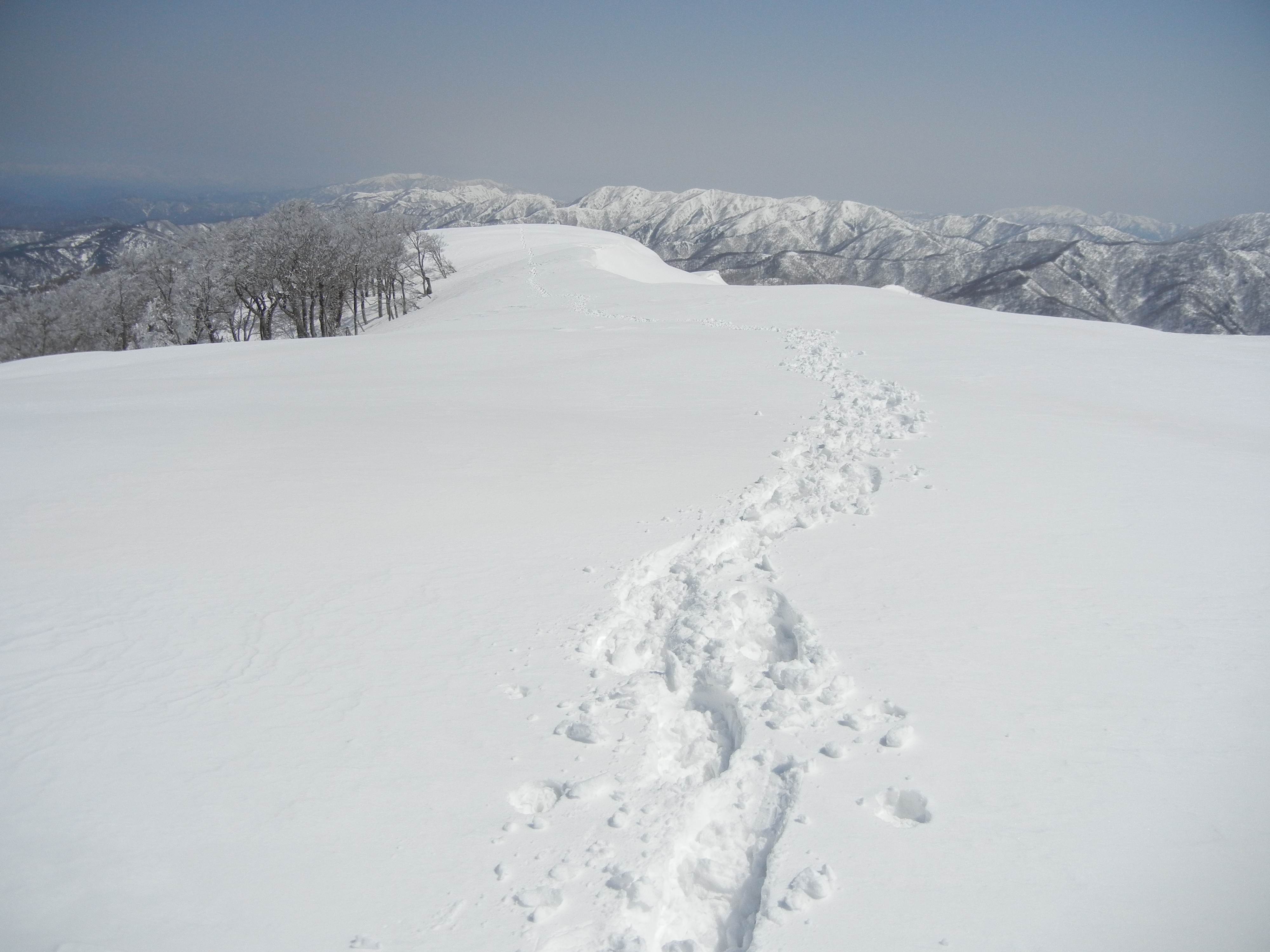 積雪期は車がどこまで入れるかがポイントです。このあたりなら里から近いので除雪の心配はありませんが、越美国境の山を美濃側からアプローチするのは大変です。私もほとんど越前側からです。