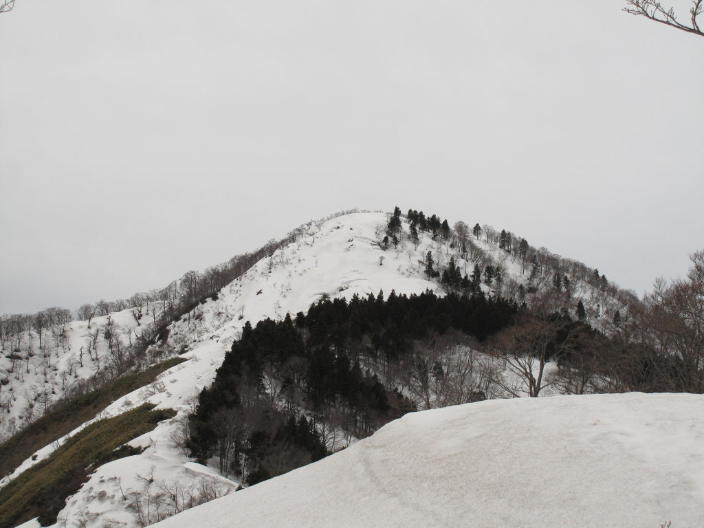 小津の体育館に駐車し、白山神社横の登山口から上る。スギ花粉症がひどいので、植林地はマスクをして上る。高屋山までは地元の人も上ってきているようで枝がはらわれていた。雪はしっかり残っており、忘れたころに登山道が見え隠れする程度だ。