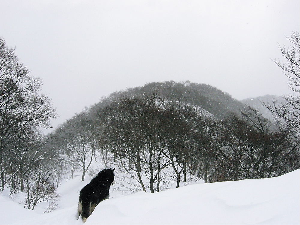 ブナ林の続く尾根上部は何時きても気持ちいい。時折雪が舞ったり薄日が射したりと安定した天候ではないがそれでも優しく迎えてくれるブナに心がなごむ。