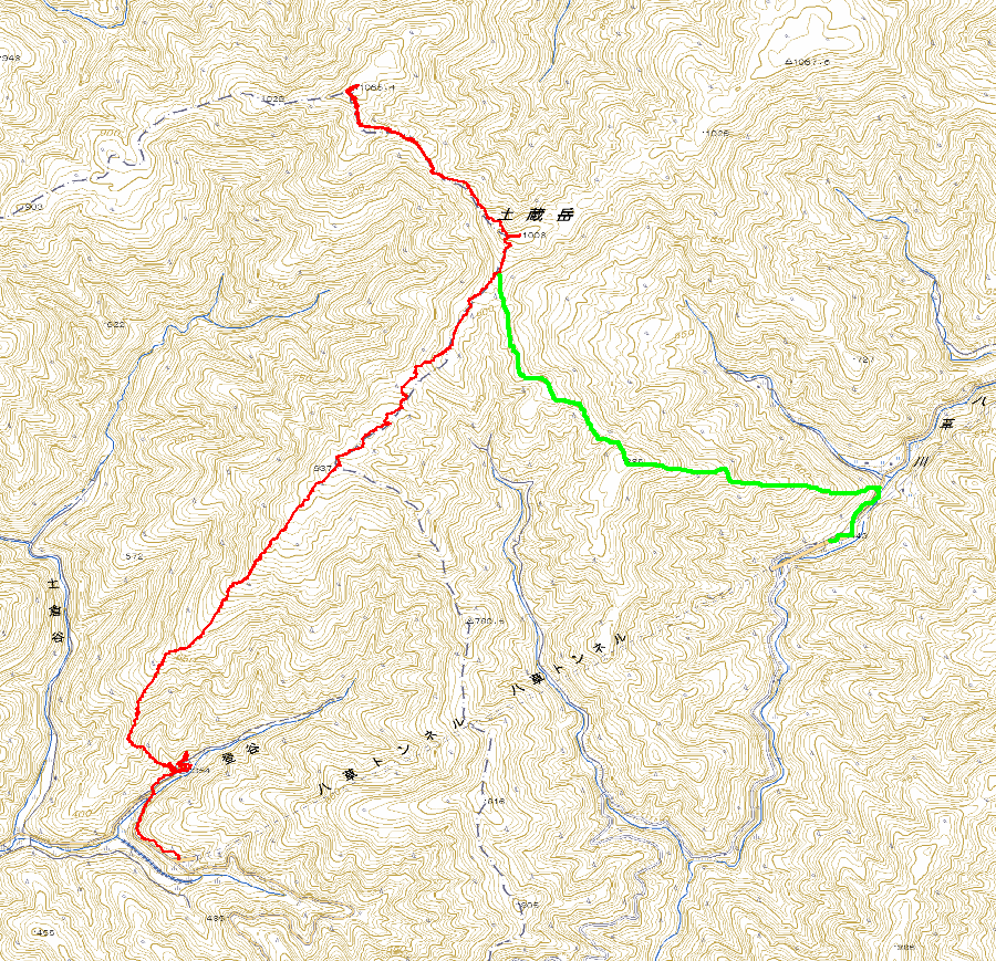 下山が土蔵岳の東南尾根になりました。今回拝見すると、八草トンネルの西口から、土蔵岳の西南尾根を登ることもできること