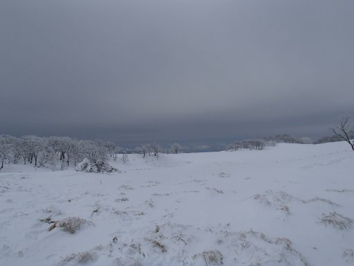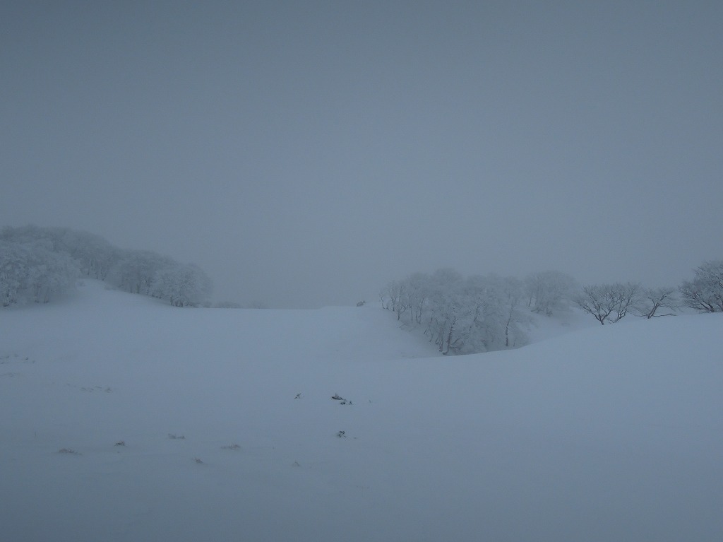 やっとの思いでテーブルランドに上がって見ると空はどんよりとして霧氷もイマイチ(-_-メ)まあこんなもんか・・・