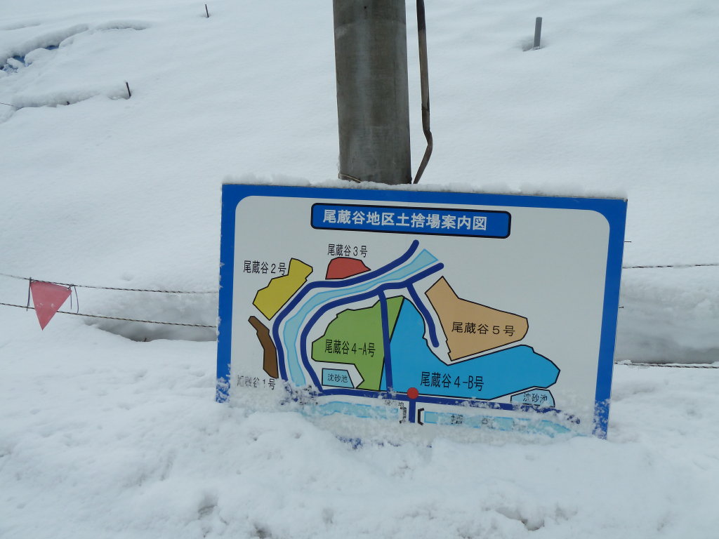 >広い尾蔵谷の出合は工事の土捨て場となっており、あちこちに雪に覆われた山ができていた。この頃には時々