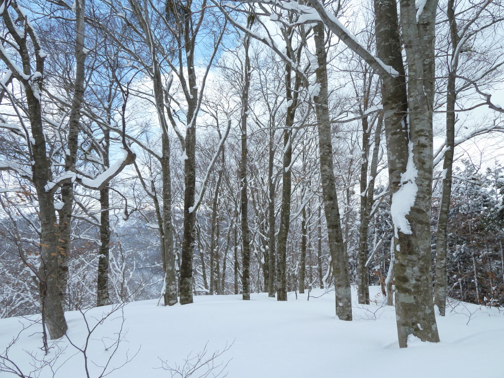 がって来ていた。これまた興醒めだが休憩にはお誂え向きだ。本当なら風がなければ感じのいいブナ林が広がる