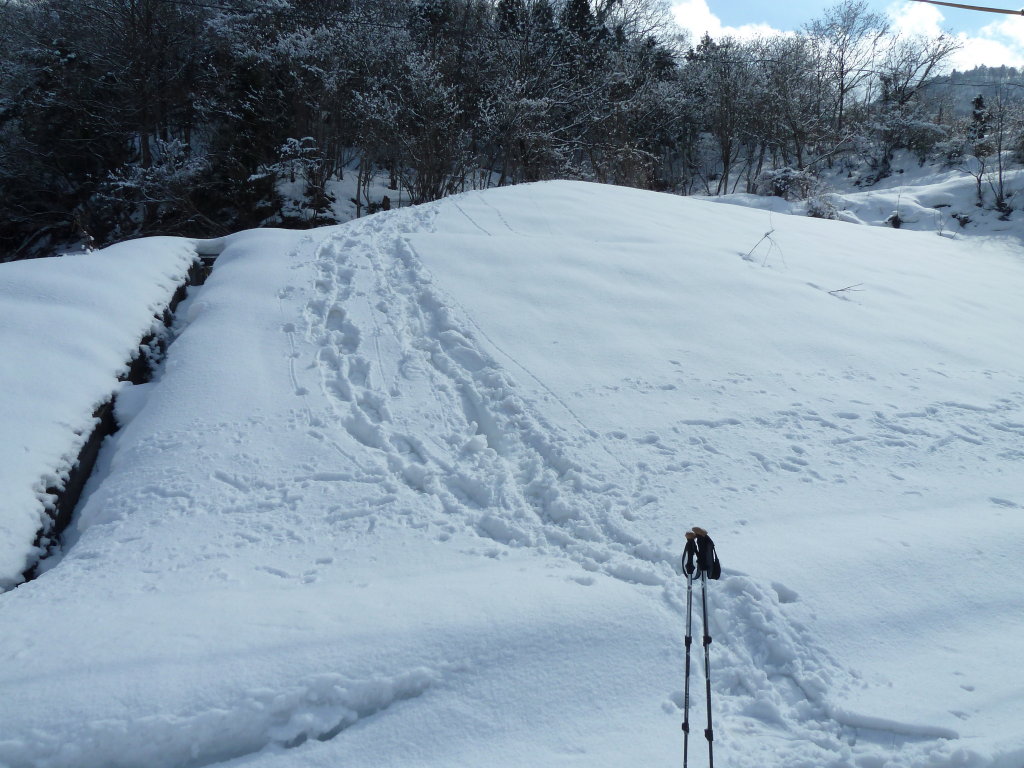 へ上がるにはラッセルが必要だった。今更靴を履き替える気もないのでダム本体は見られず終いだった。