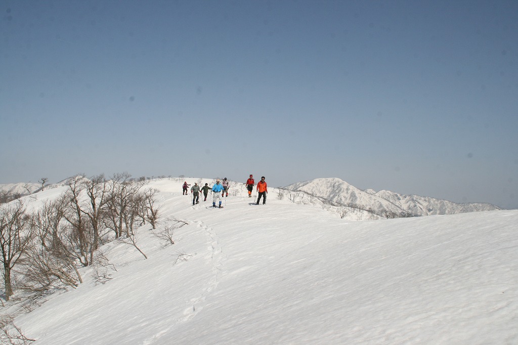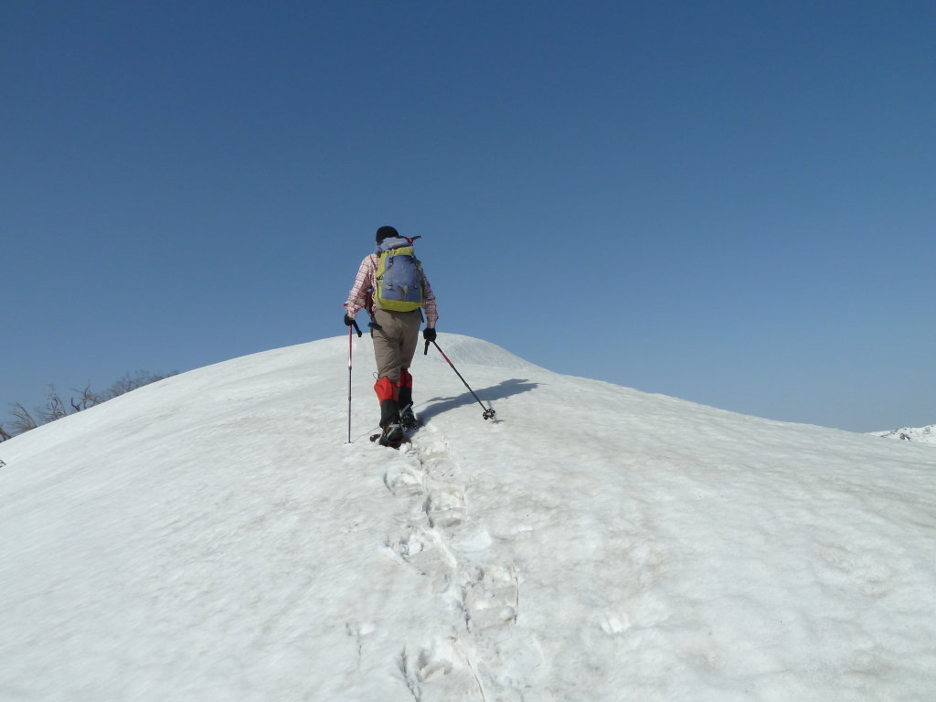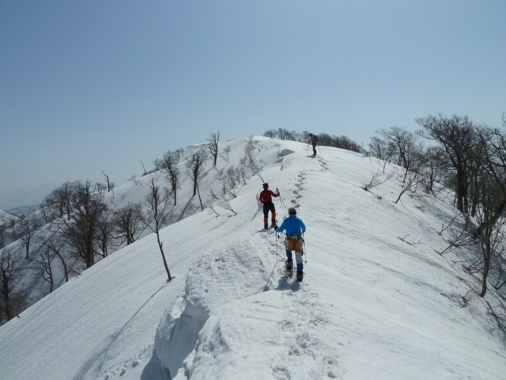 この尾根はまったく気持ちがいいという以外の表現が見当たらない雪尾根である。無雪期から