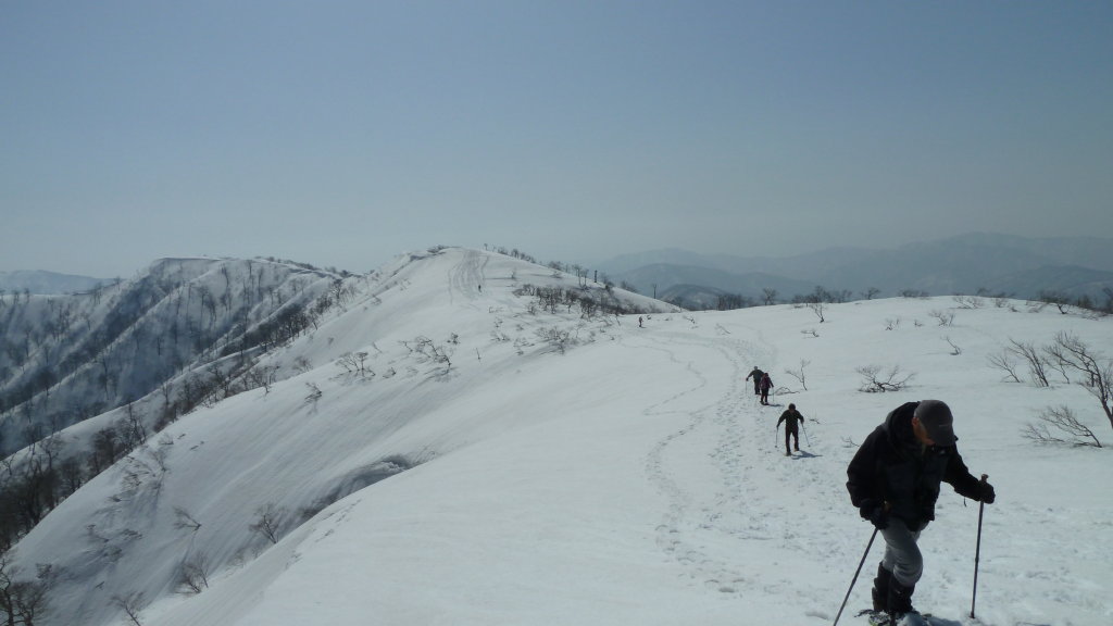 三国岳直下の広大な斜面はとても尾根とは呼べないような広がりを見せる。振り返れば上谷
