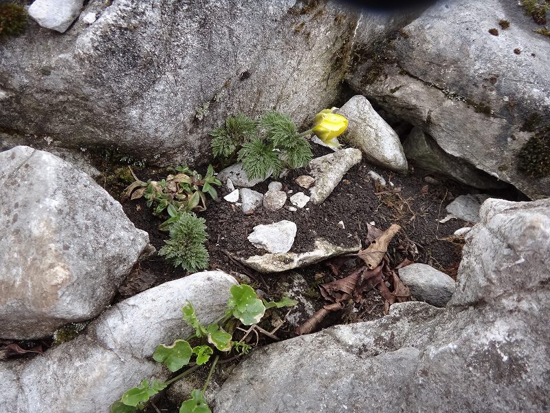 それでも北斜面のドリーネあたりにわずかな群落を見つけて、やっと歓声が上がった。