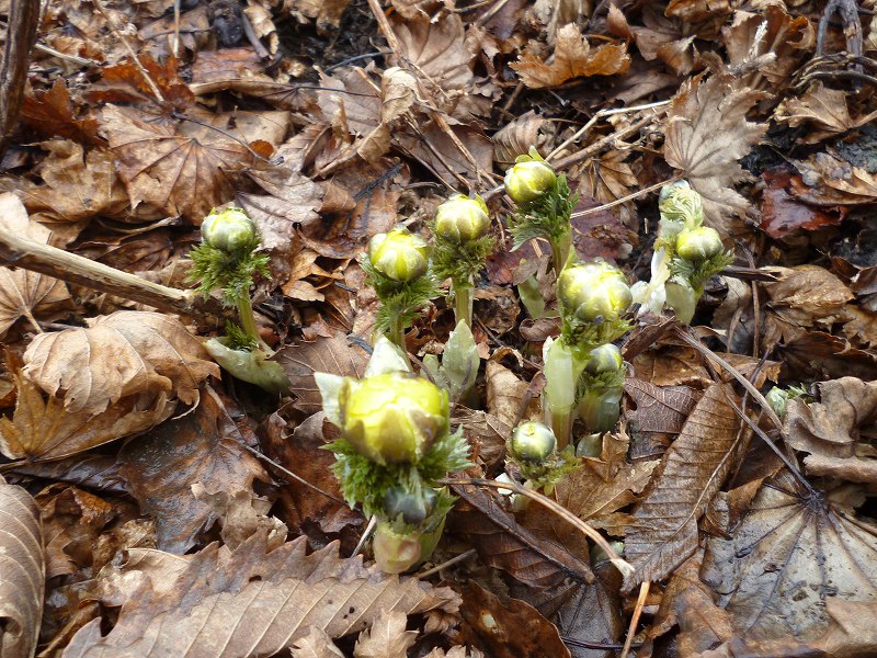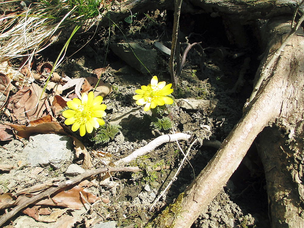 ところどころ、20mで一輪やっと見つけられるか見つけられないほどの福寿草に、狐につままれたような気分になってきた。