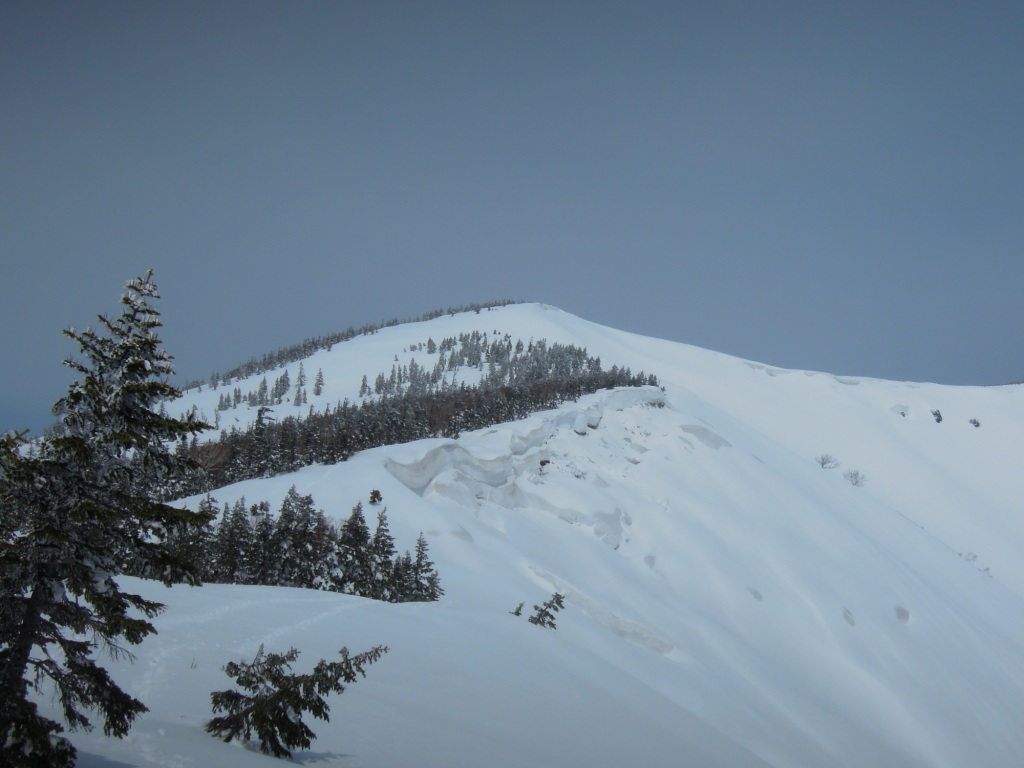ただそこを過ぎればまた広い稜線が待っている。これを登りきれば昨年も来た大戸沢岳である。どこがピークか判じ
