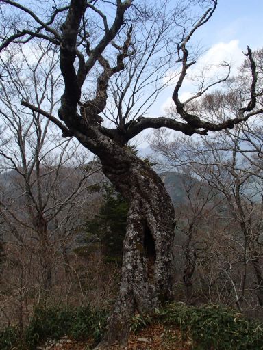 ここからは八丁坂という道を一旦下るが登山道は大きなブナの木が立ち並ぶ。