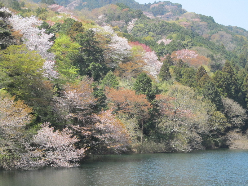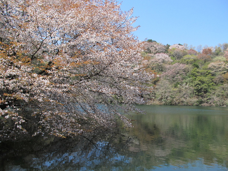 枳池(?)は農業用の溜め池なのだが池畔に桜も有り、山桜の遠景もいいのだ。
