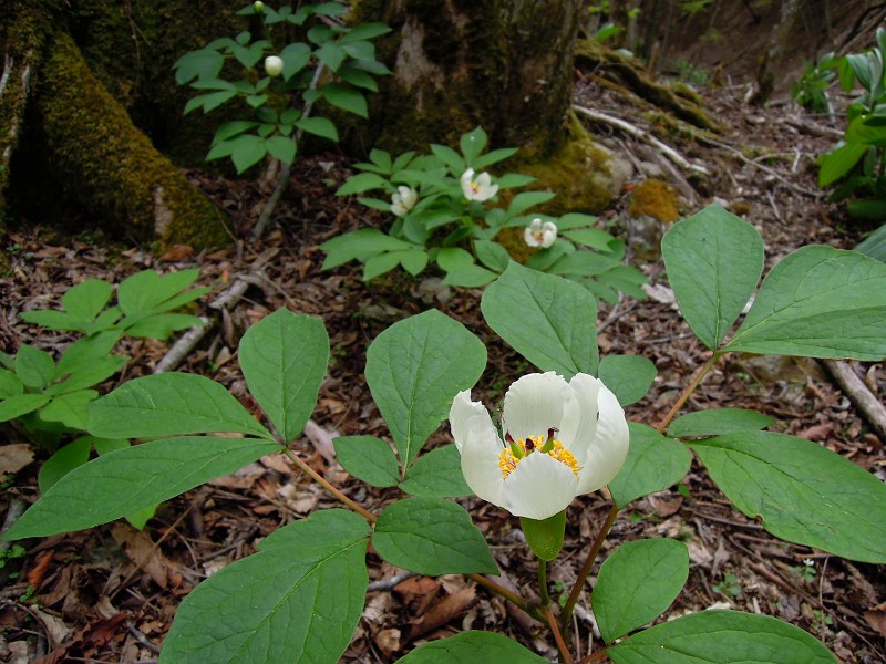 太い切株が今も残る二次林を彷徨いながら歩いていると、ヤマシャクの群生に出合ったりする。