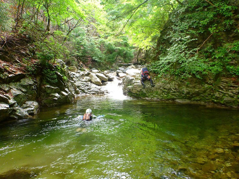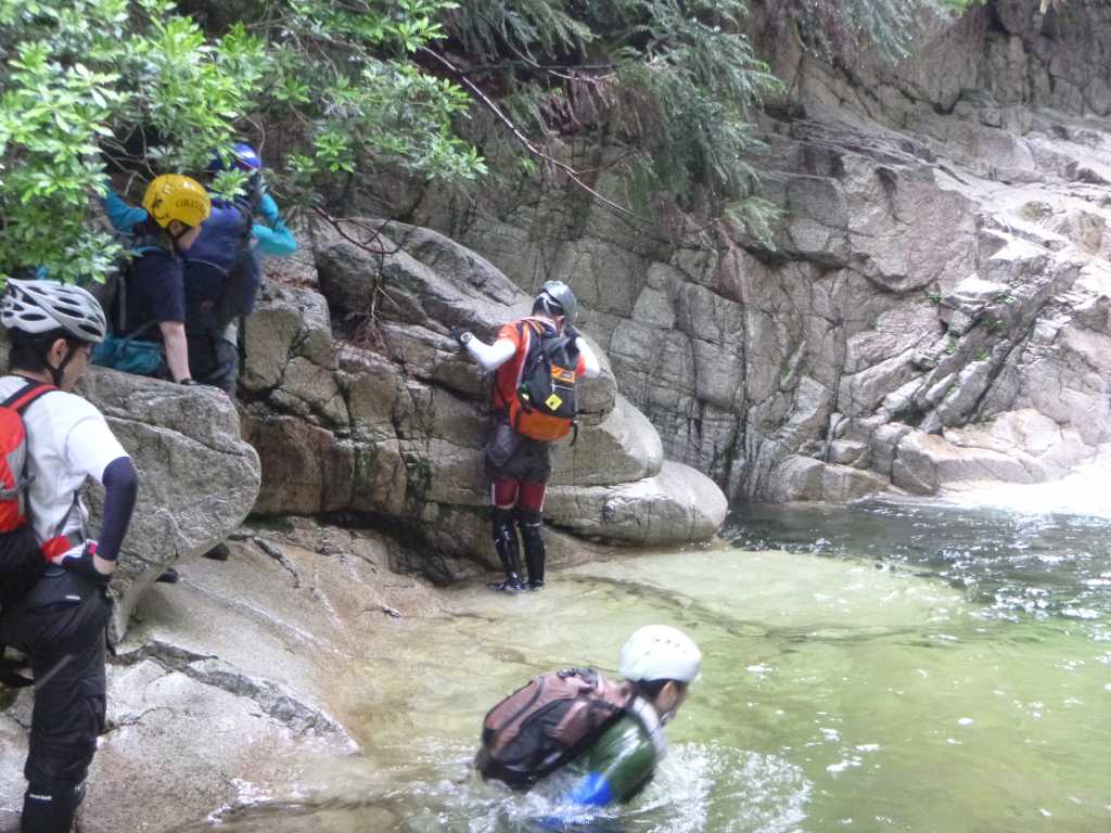 シュークリーム さんが書きました:ほとんどが沢初心者なのでリーダーのたろーさん一人では面倒見切れないだろうということで私がサポートに回る事になった。