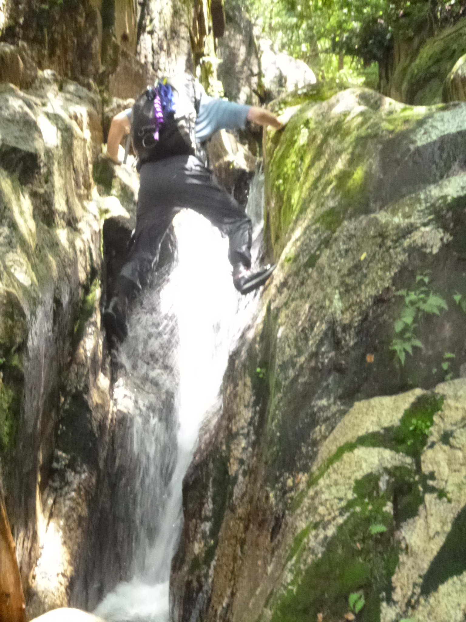 僕らはそのまま本流を進んでいく。いきなり縦に割れた感じの岩場が出迎えてくれるが意外と簡単に登れた。