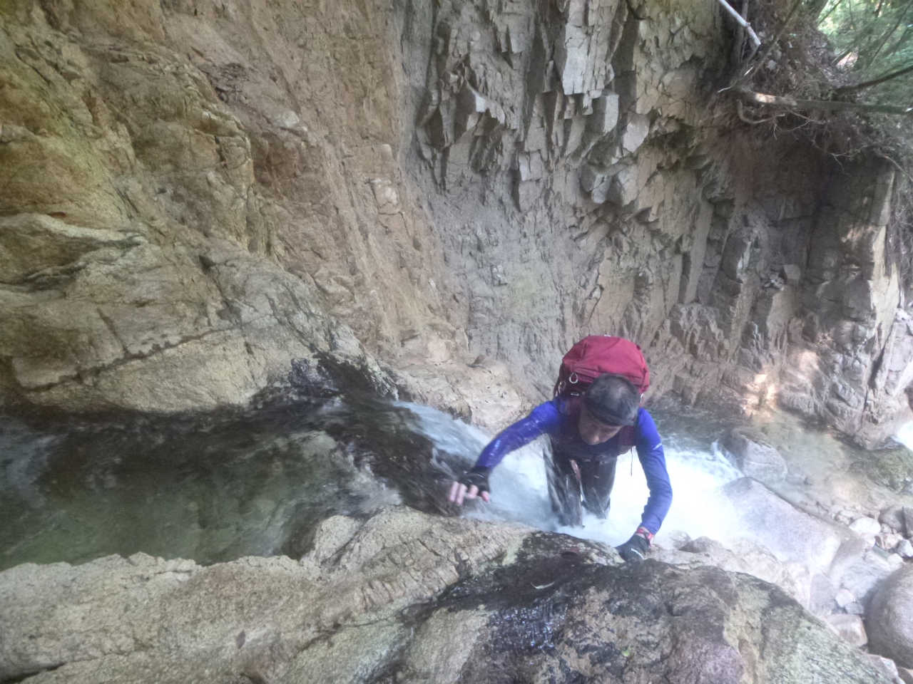 おお、ここは昔、「絡み懸垂」した記憶が・・・滝を登るわりばしさん