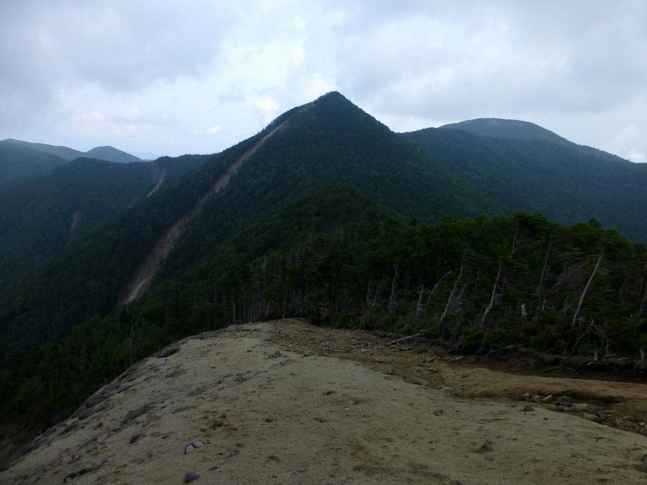 山容が飛び込んできた。 さすがに百名山とされただけの品格がある。 再び樹林の中に入り、トラバース気味に進むと、甲