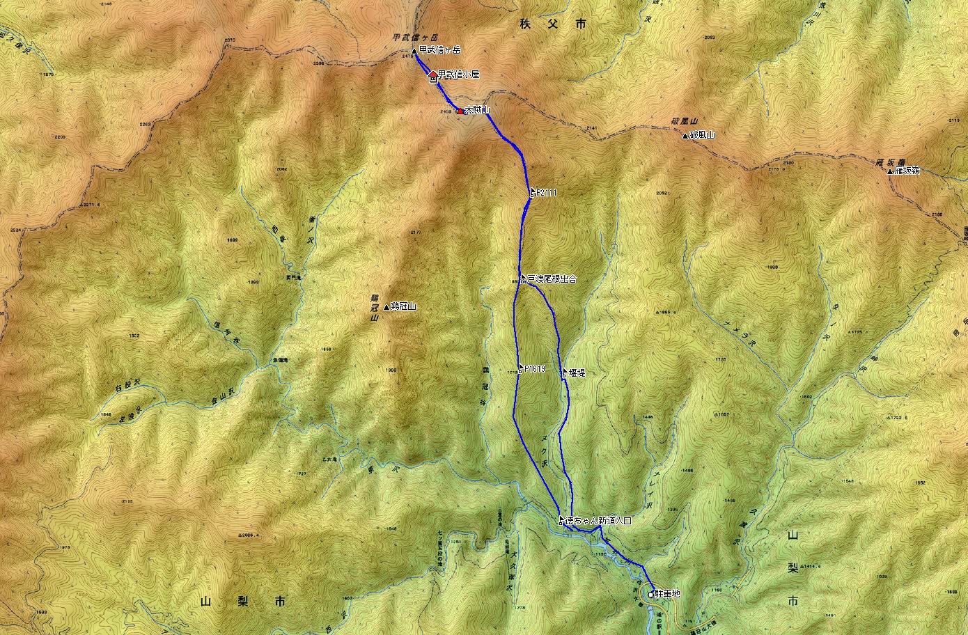 (2475m)-甲武信小屋-木賊山-戸渡尾根分岐-徳ちゃん新道分岐-西沢山荘(徳ちゃん新道登山口)-西沢渓谷入口