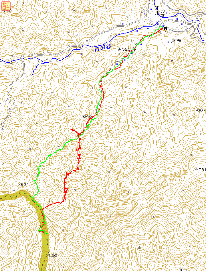 山日和さんへのresの地形図、登りが赤線、降りが黄緑線ですか?