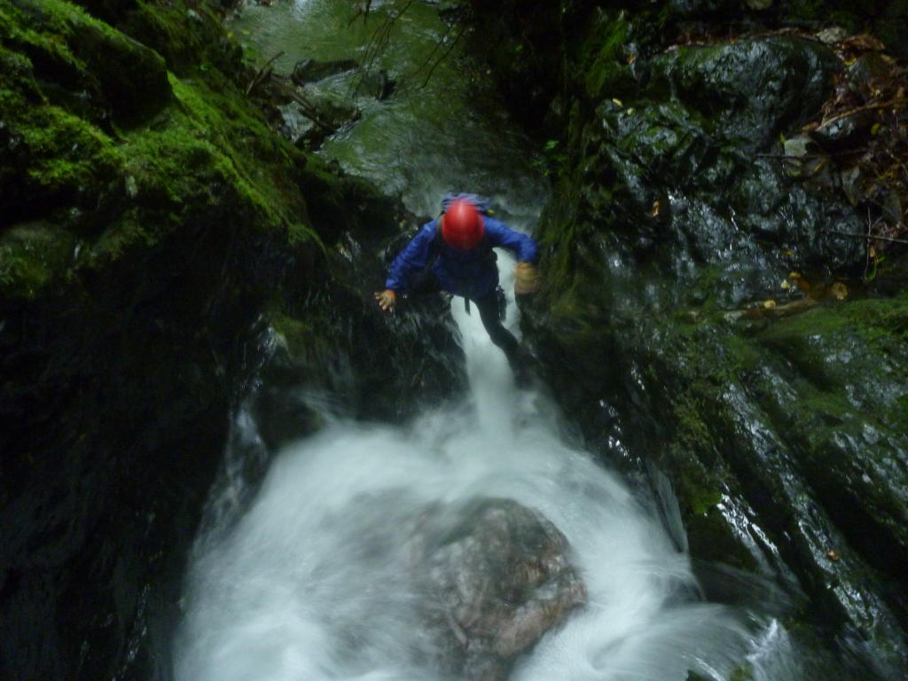 ちょっとしたゴルジュで初シャワーを試みた。一度濡れてしまえば後は同じ。腹を括ることができた。