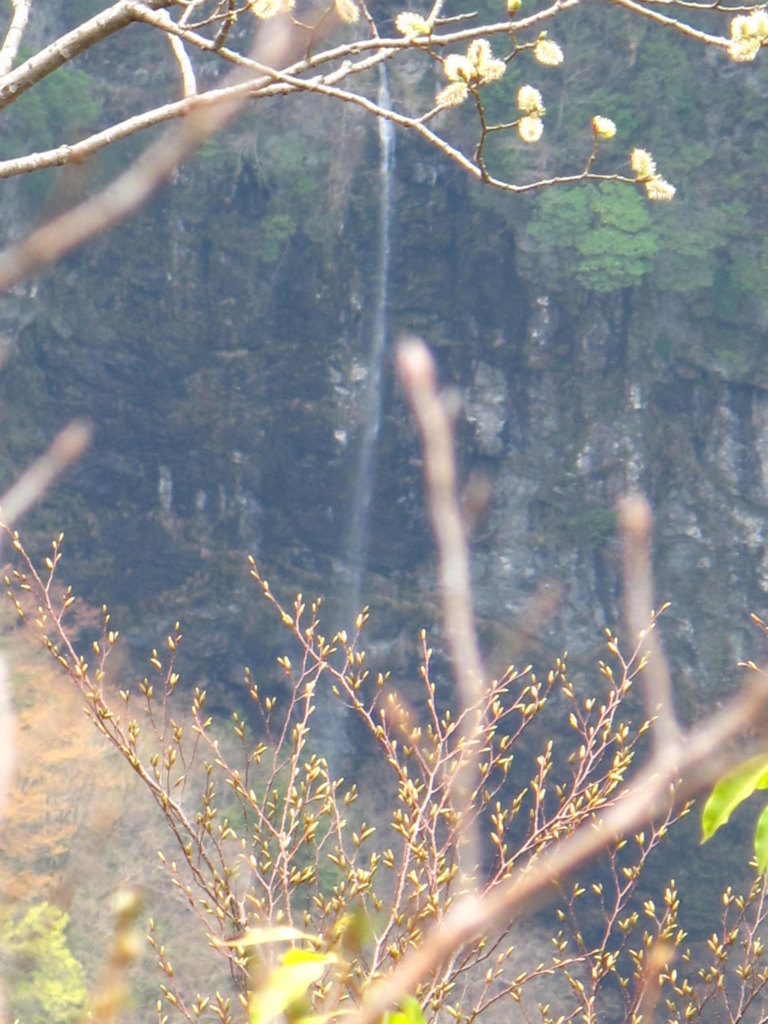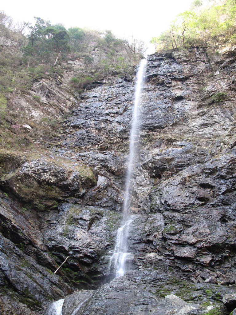 滝手前の小尾根から取り付く。しばらく登ると、山桜の木が数本あり風折滝も見える花見にはもってこいの場所がある。残念ながらここの桜の花は散った後で、1週間遅かった。