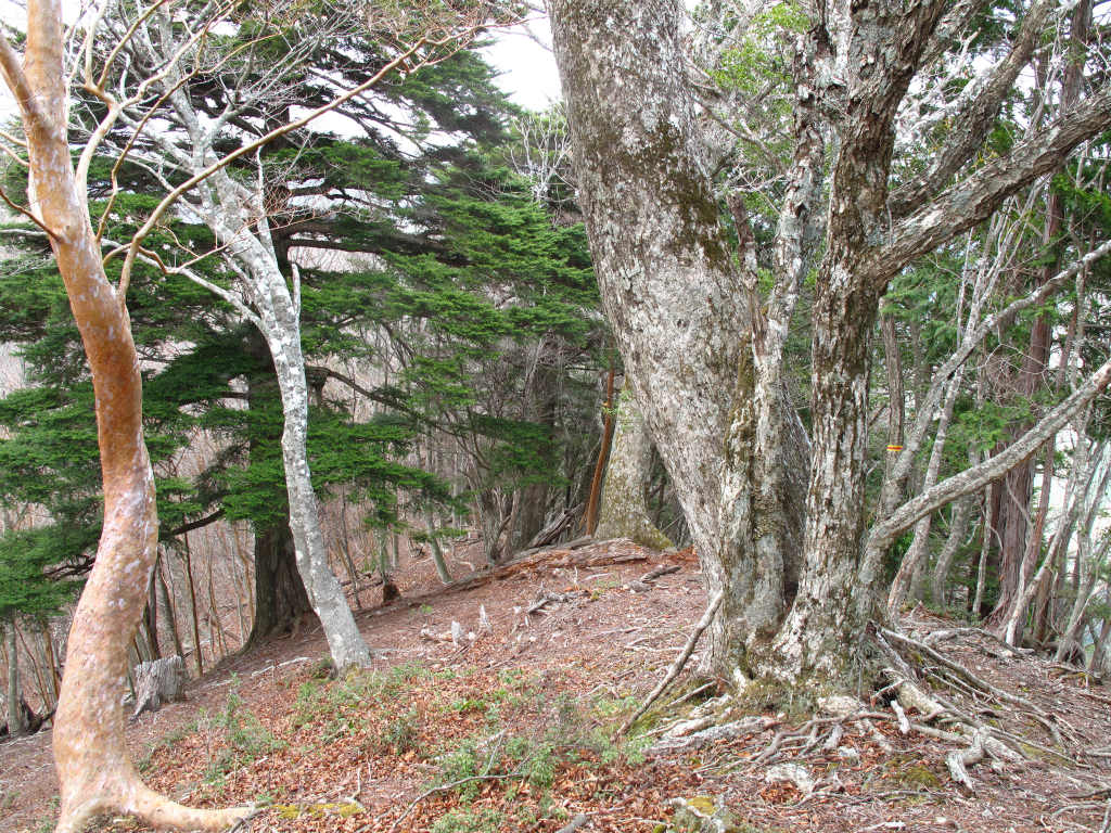 滝見尾根には、針葉樹ではトガサワラが多く、ツガ、コウヤマキ、ヒノキがあります。
