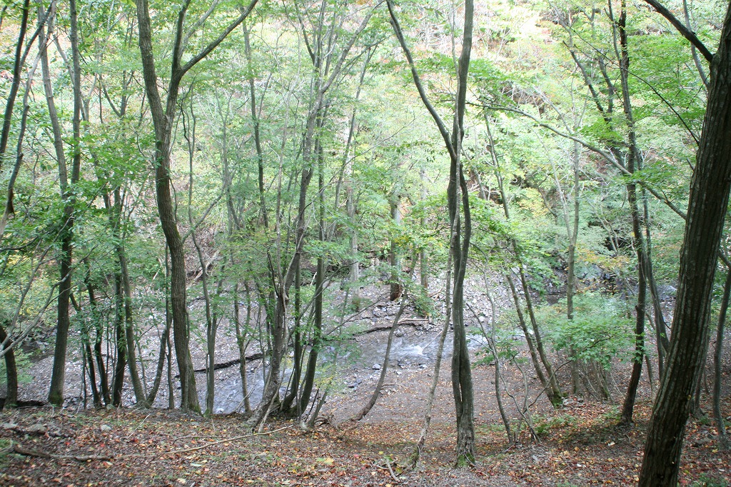の山腹をかなり遡っていた。高巻き道と思い込んだのは、蛇谷を遡行する道だったのだ。ここで蛇谷に下降し、蛇谷は