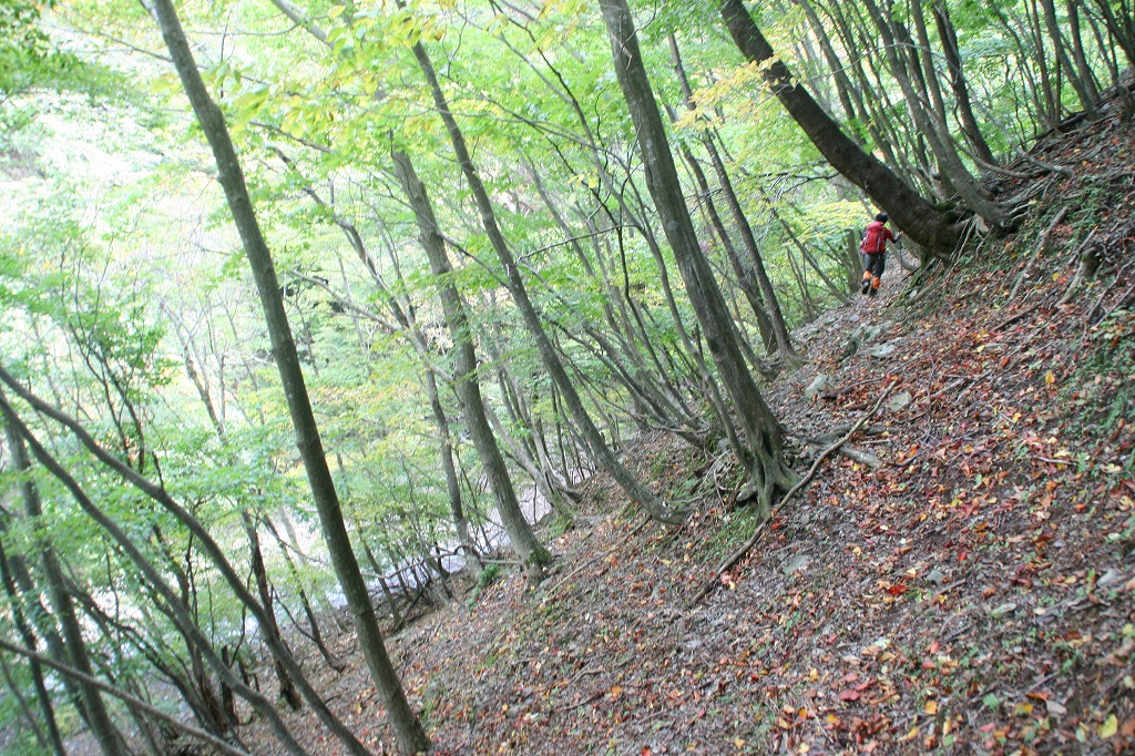 ノタノ坂から茨川への道は初めてである。最初はトラバース道であったが、すぐに溝状の道となり、さらにジグサグ道とな