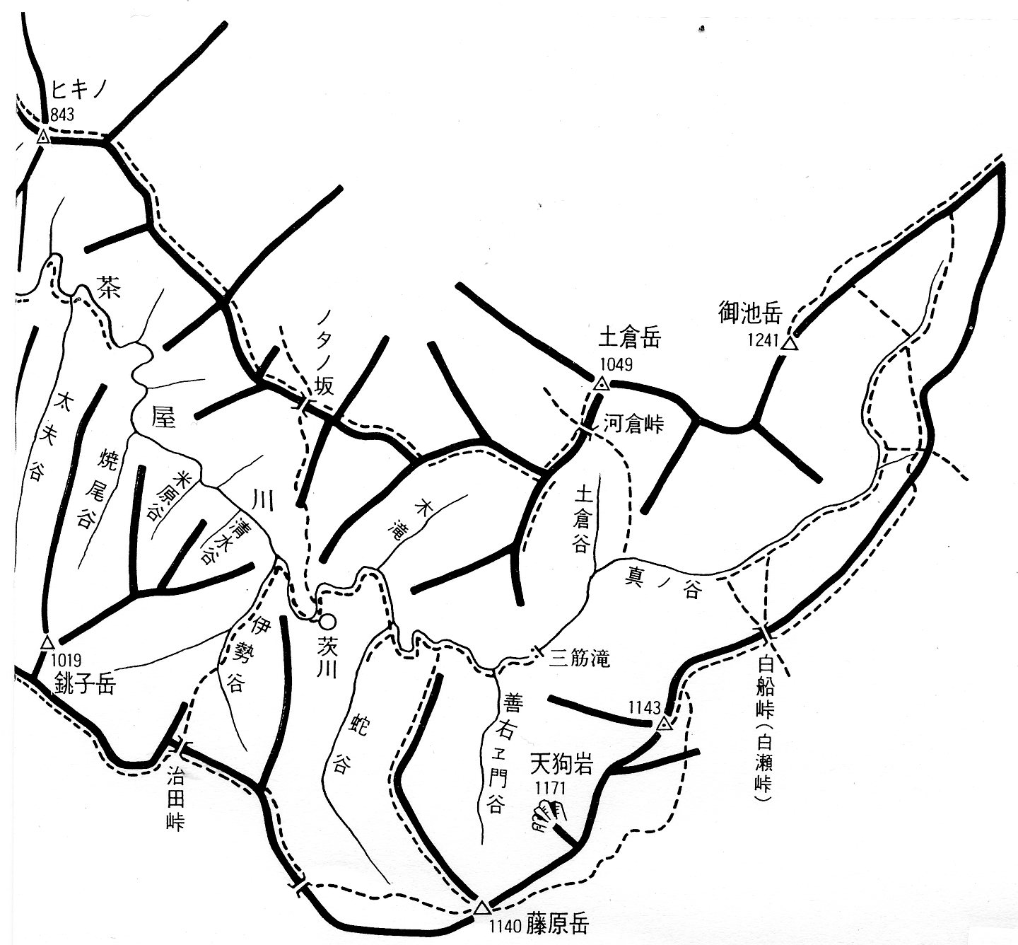 後で茶屋川が増水しているであろうことから遡行ができるどうか、また廃村茨川のところで渡渉ができるかどうかというこ