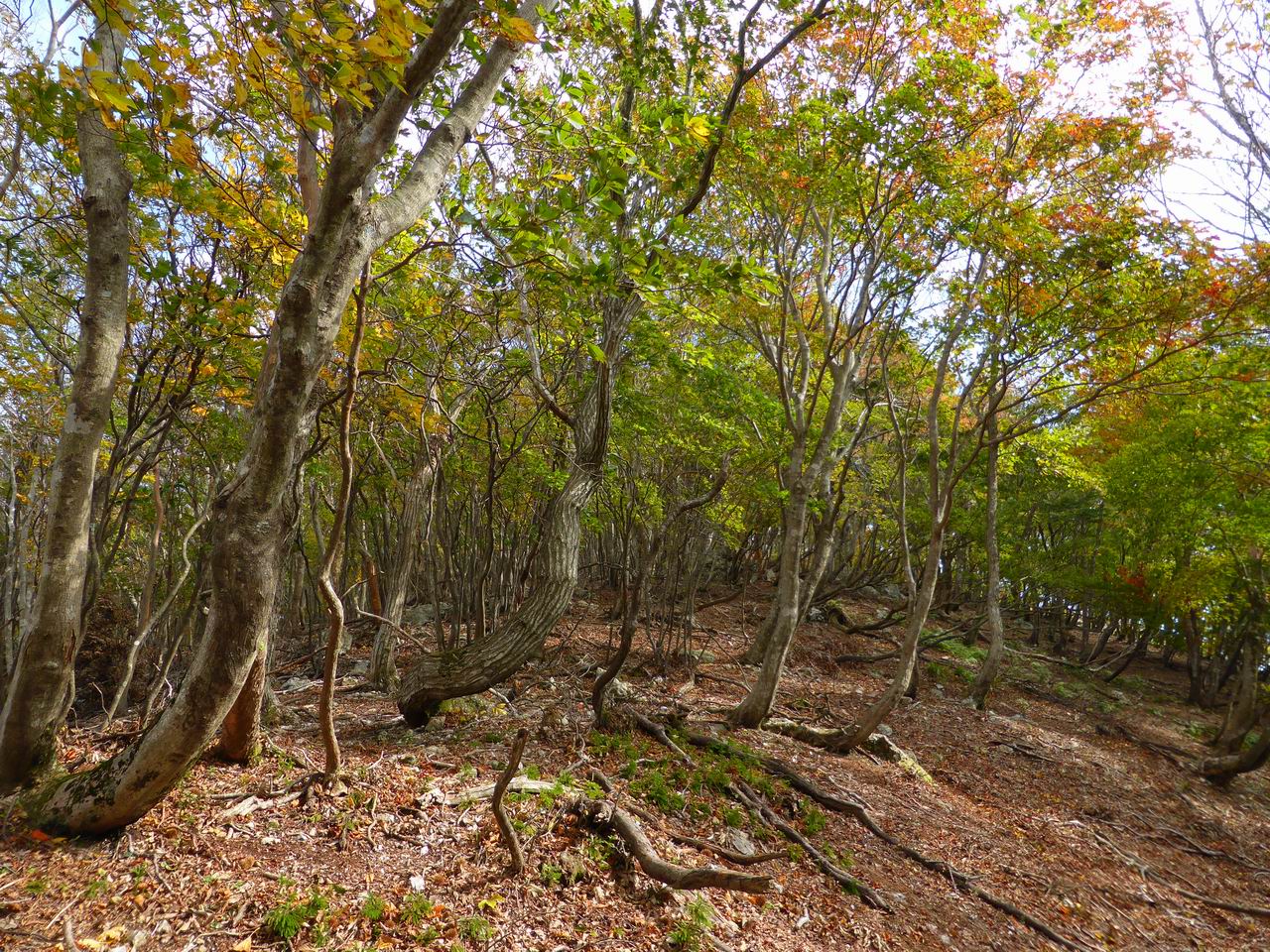 然林の中の登りとなる。P893から少しは傾斜が緩やかだが、その後急登になってきた。尾根芯に沿って登っていくと、や