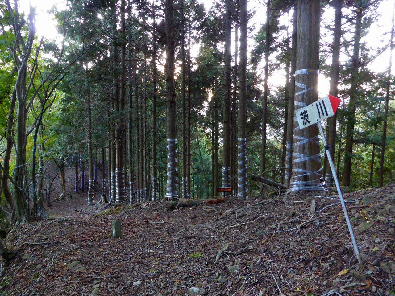 に戻る、②県境稜線を南下し、迷い尾根分岐点から迷い尾根を廃村茨川に下るというルートである。