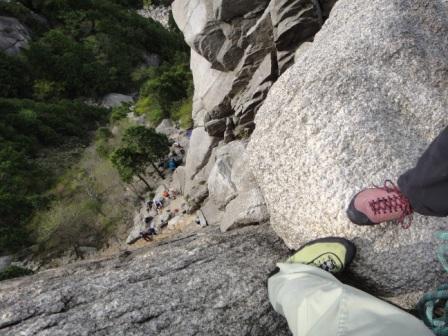 こんな画像見ると良く登るなぁ思いますよ、足がくがくしないですか?5人中最後に登ったが、他の4人は何とかクリアーしたのでギブアップする訳には行かない。