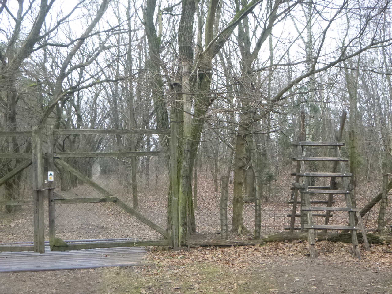一通り写真を撮った後,山頂らしくない山頂を辞し,さらに歩いていく.しばらく歩くと車が頻繁に通る車道に出た.794番系統のバスも通るようだ.車道を横切り歩いていくと,高さ2mほどもある金属製のフェンスがあり,人間はフェンスの横に設けられたはしごを登って中に入るようになっている.鹿などの動物よけなのだろうか.そういえばこの辺りは固有の生物が生息し,自然保護地区になっていると聞いたことがある.出口にも同様のフェンスとハシゴがあったが,その距離は歩いて30分以上あった.おそらく相当広い領域にフェンスを張っているようだ.まあ,自分の家の周りを常にフェンスで囲んでしまうような人たちだから,こんなフェンスを張るのもお手の物なのだろうが.