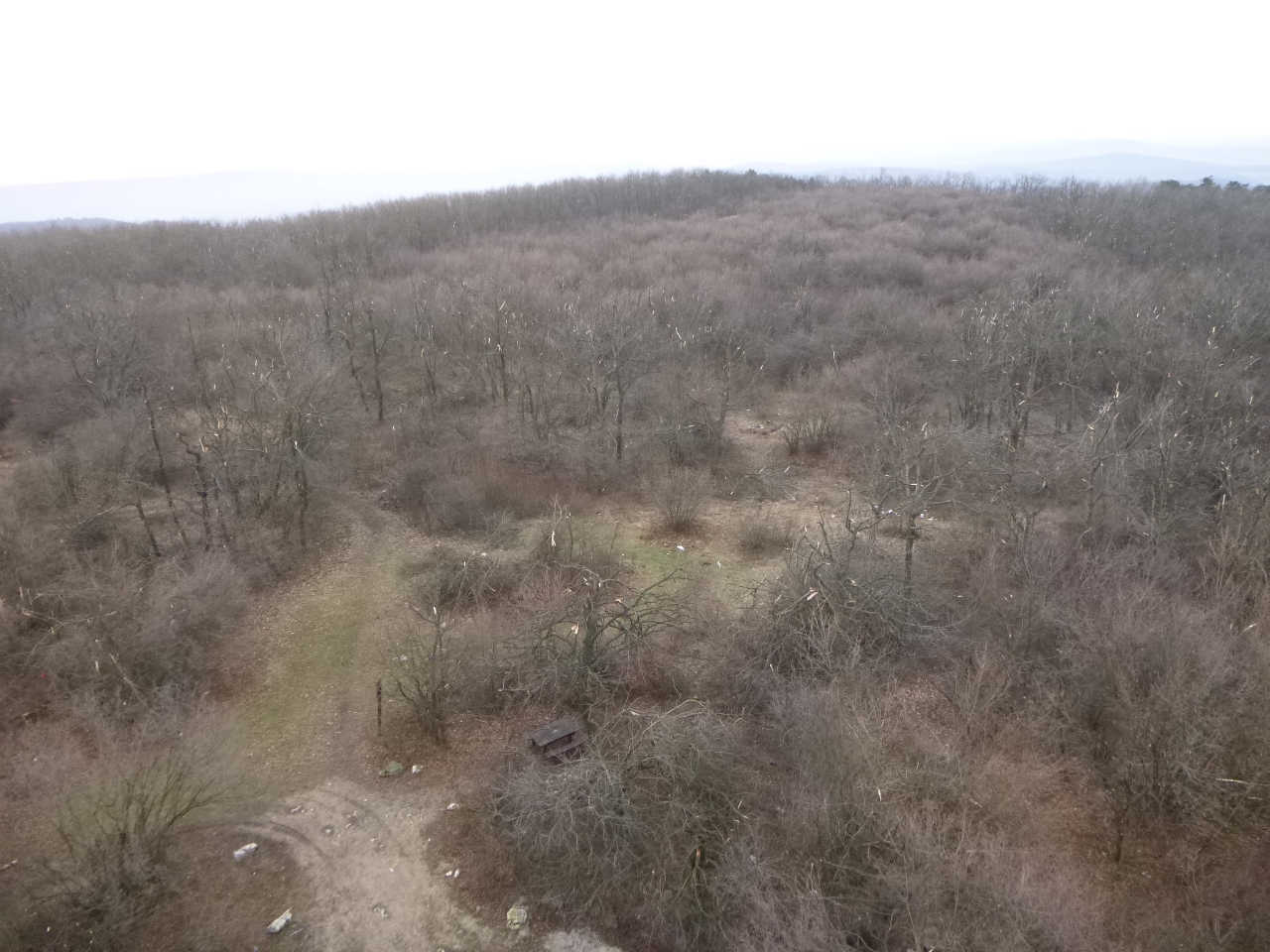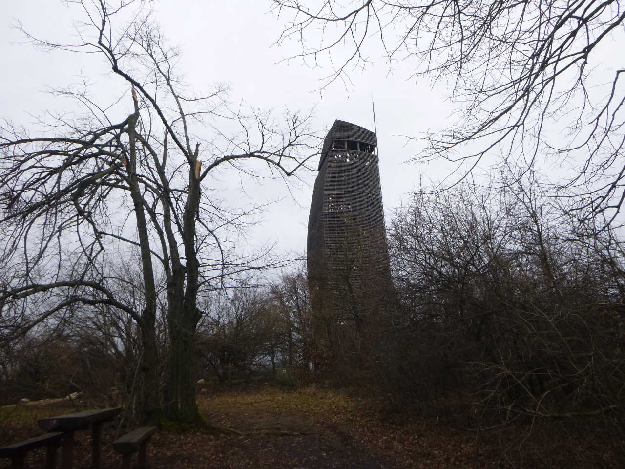 1時間ほどで今日の最高峰Nagy-Kopasz山559mに着く.なにせこの辺りはすべてのっぺりしているのであまり登ったという感じはないんだけども.この頂上には5階建ほどの立派な木製の展望台があり,一人の男性が食料を広げて休んでいた.挨拶をして展望台に登る.建物の古さから見て共産主義時代に建てられたものだろう.おそらくトレイルコースも共産主義時代に整備されたものではないか.共産主義時代がすべて悪いことばかりだったわけではないというハンガリー人もいるが,確かにその通りなのだろうと思う.