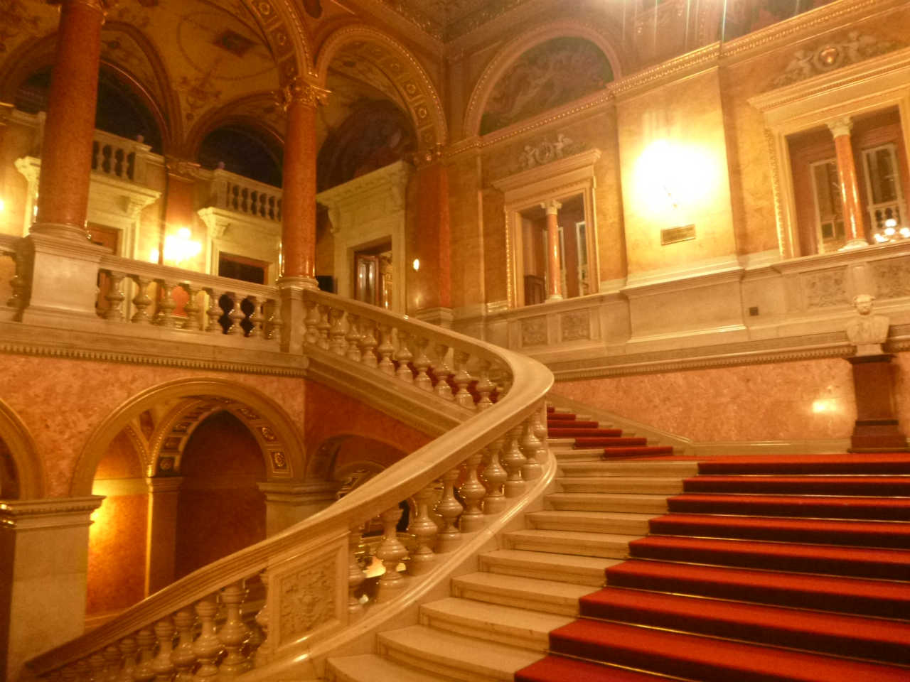 ついでにハンガリー国立オペラハウスの内部を紹介させてください.19世紀後半,ハプスブルグ帝国が最も盛んな頃の建築です.内部は大理石でできていて,素晴らしい建物です.ブダペストに来る機会があったら是非訪れてみてください.
